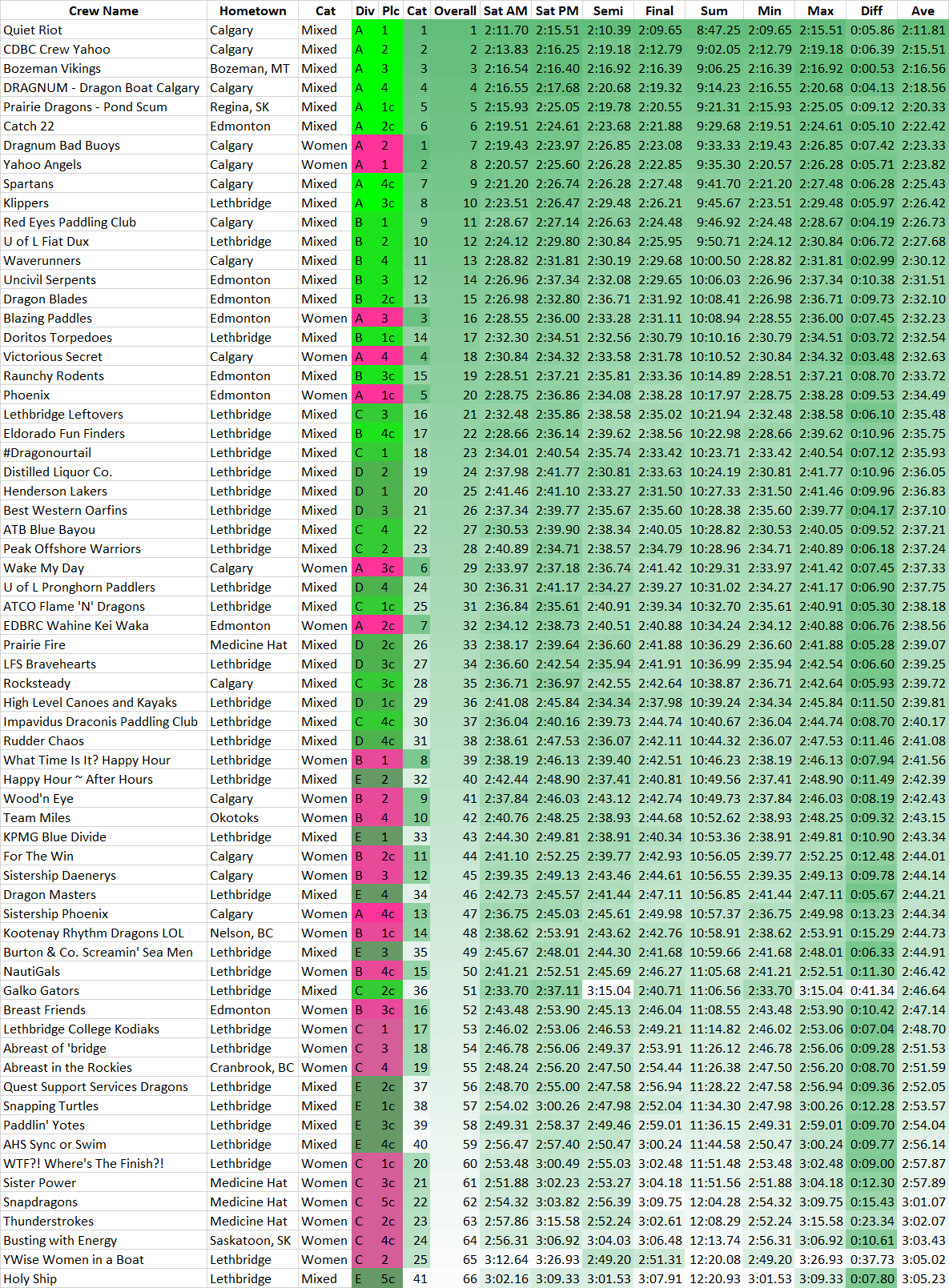 The chart is sorted by overall rank by average race time.